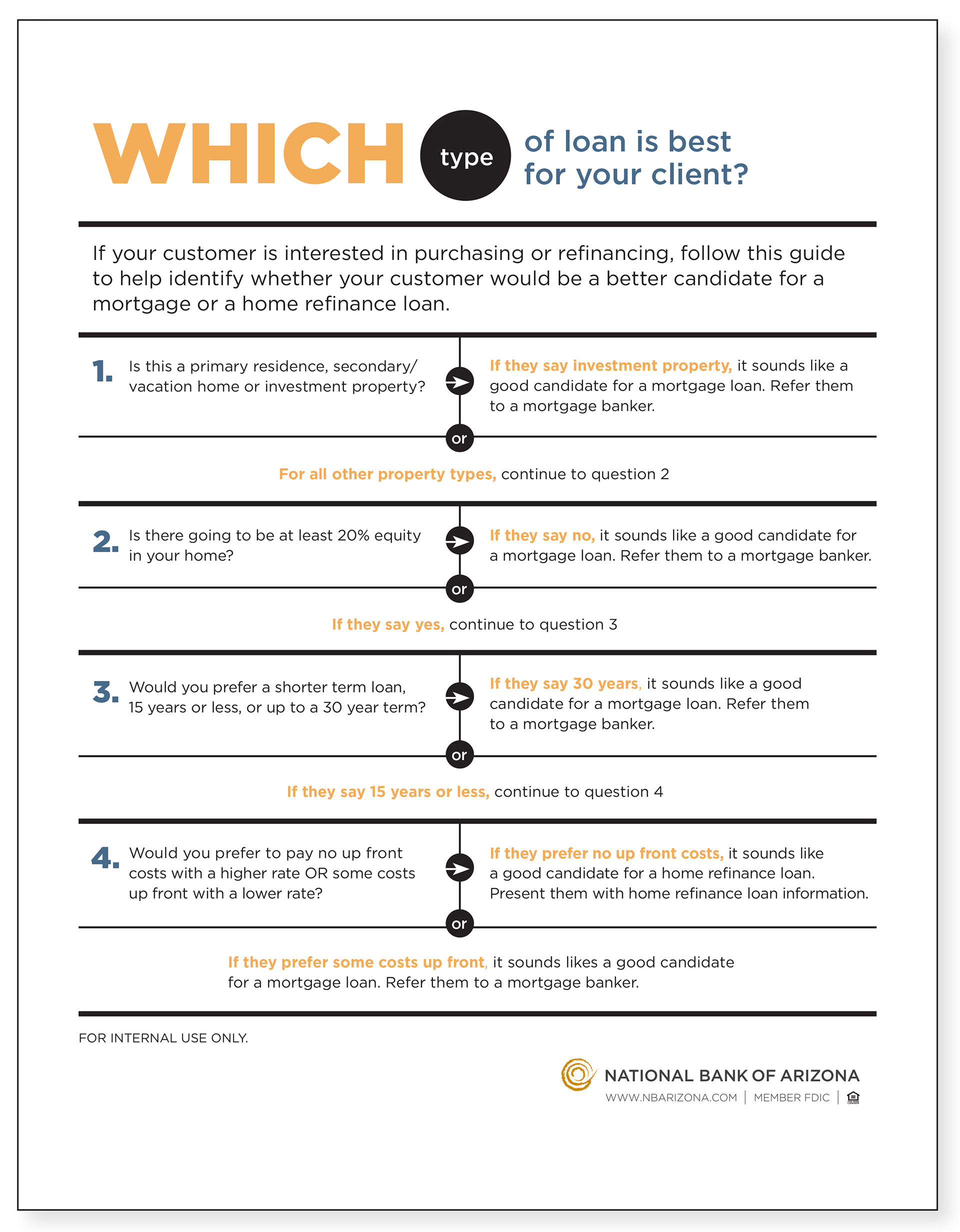 Reference flyer that I designed for bankers to use when determining which loan product is best.
